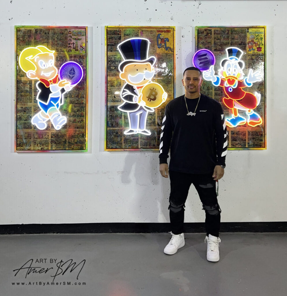 Amer has developed custom artwork for high-profile clients including Snoop Dogg, Rick Ross, Tyga, Drake, Danny Green, and Fred VanVleet. In 2019, he showcased during Art Basel week in Miami, further expanding his international presence.