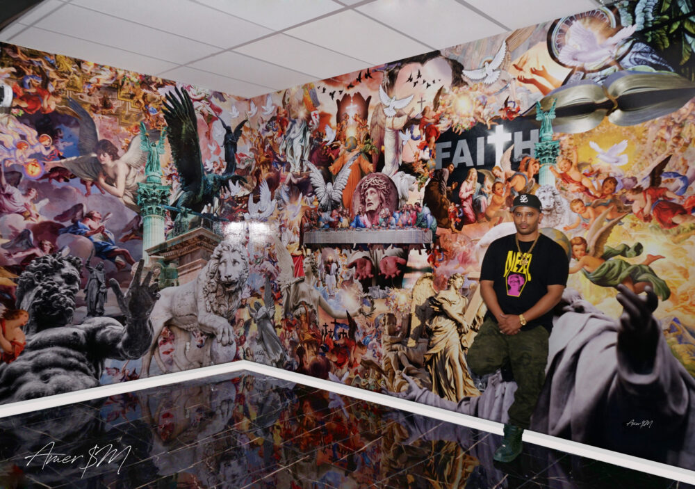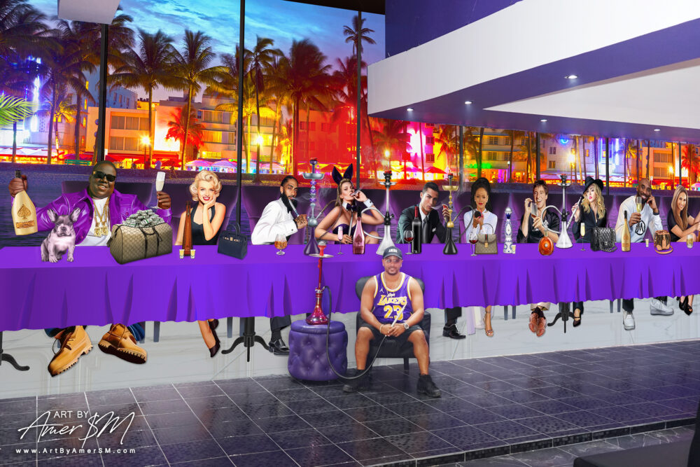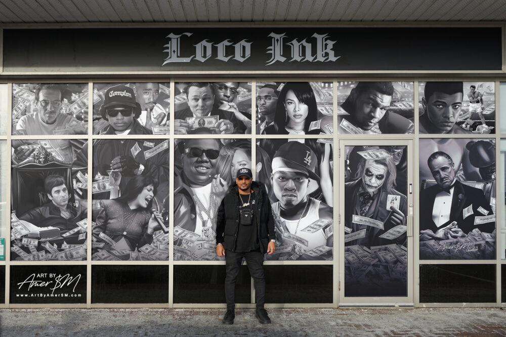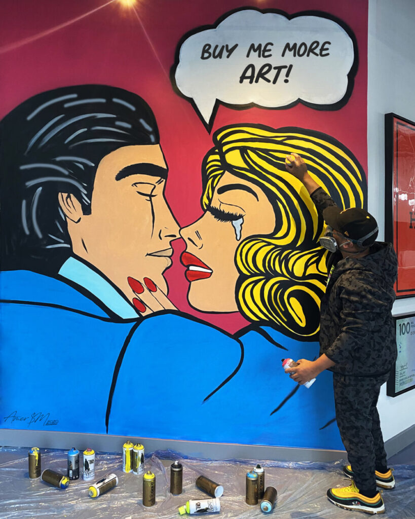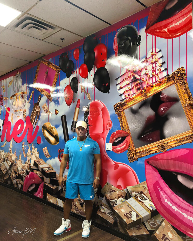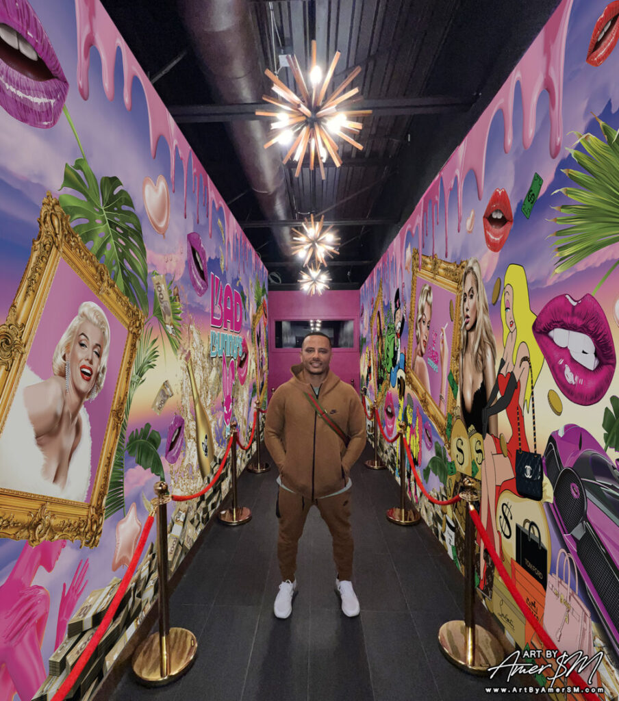 Today, Amer operates as a full time commercial and residential artist, executing custom murals, wall wraps, 3D backlit logos, resin installations, and sculptural statement pieces for clinics, restaurants, luxury homes, and corporate environments. His work transforms spaces into immersive brand experiences.