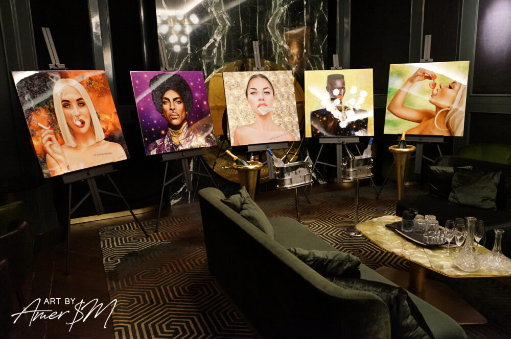 Entering the professional design world, Amer quickly recognized the power of independence and launched Digital Demand Studio, providing branding, logos, marketing assets, and creative direction to nightlife venues and entrepreneurs. Simultaneously, he continued refining his fine art practice, eventually expanding into large scale commercial and residential installations.
