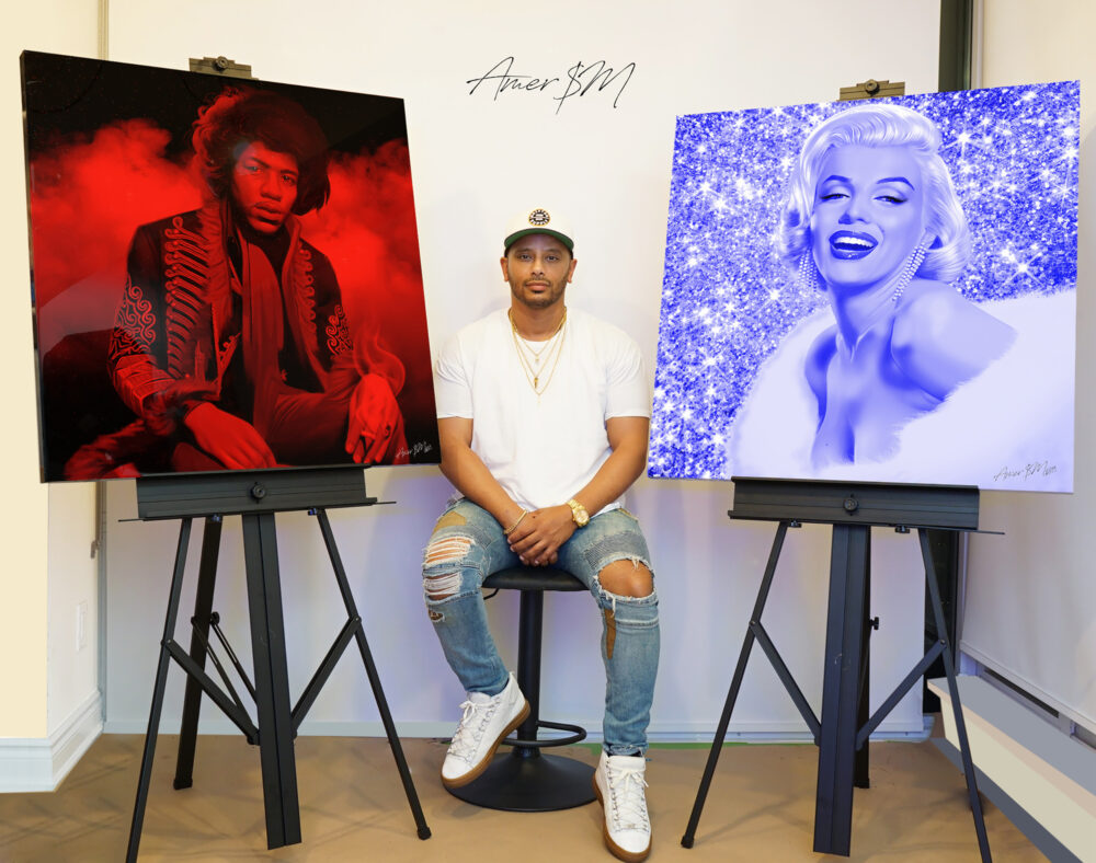 Born in Saudi Arabia, Amer’s artistic foundation began at a young age under the influence of his aunt, who introduced him to the emotional power of color and composition. What started as childhood experimentation painting on paper, walls, and anything within reach quickly evolved into an obsession with creation.