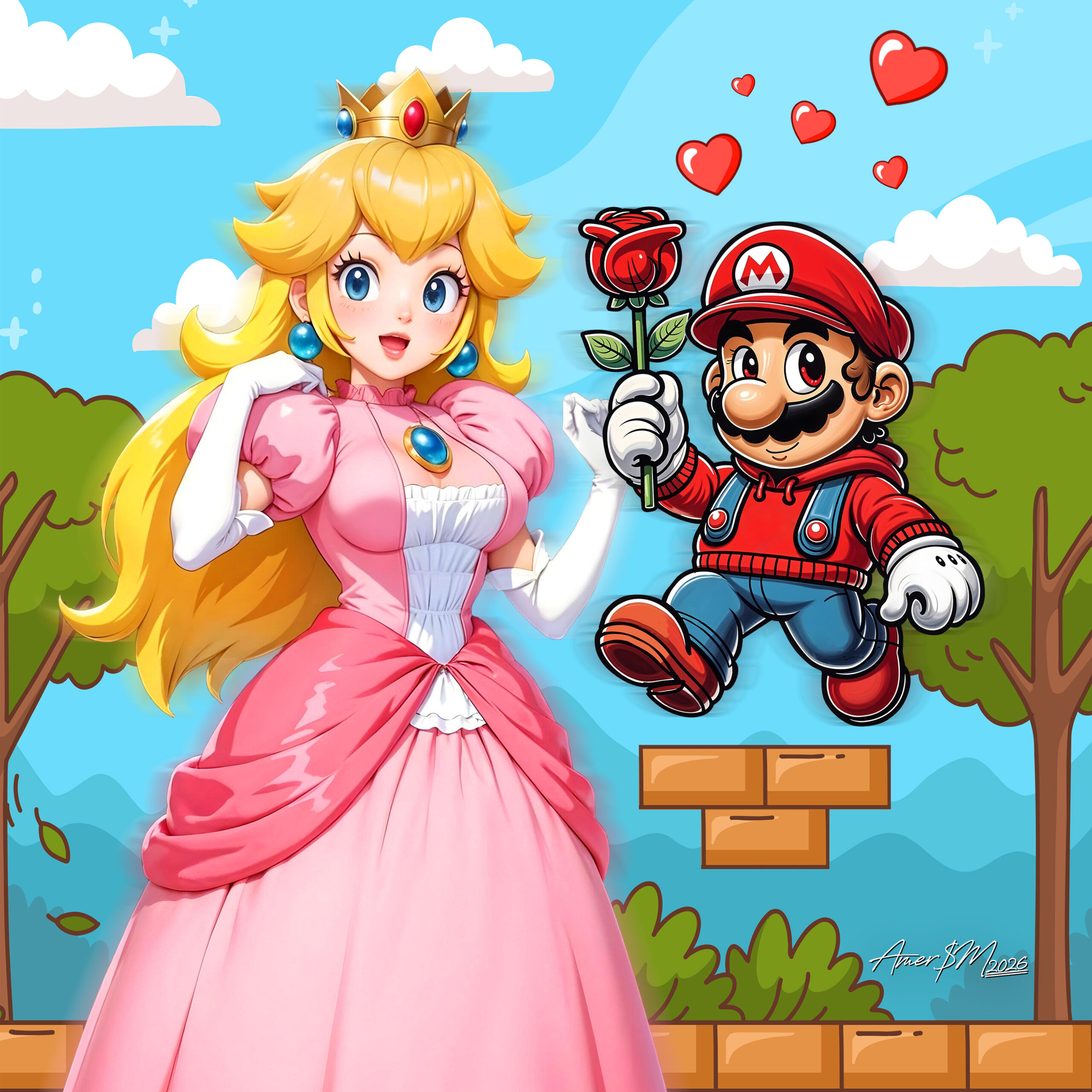 A playful moment of affection set in a familiar fantasy world, where a simple gesture becomes an expression of love. Printed on an ultra-high-gloss, film-smooth surface that enhances color and clarity, this piece is finished with a sleek, contemporary sheen and presented within a glass frame with a clean metal edge.