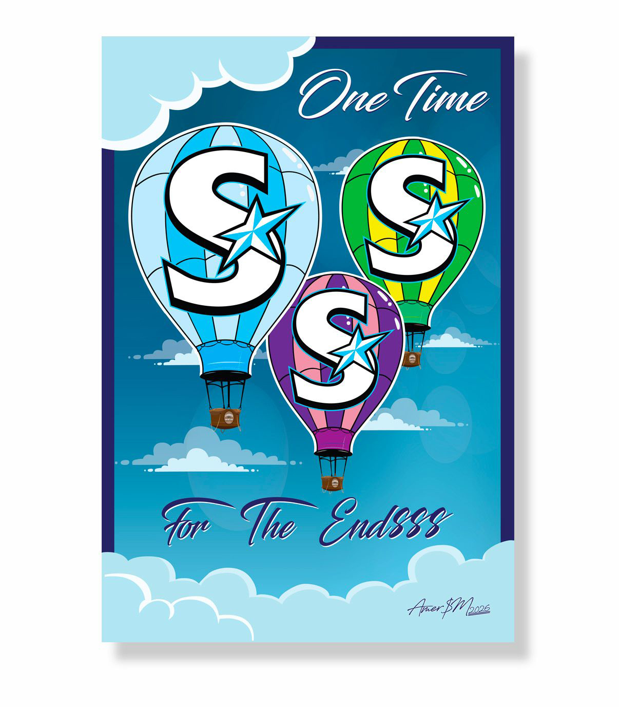 This piece will be constructed live on stage during the event. The three central balloons will be hand painted in real time and the S Star logos will be precision die cut in acrylic glass and mounted live to create a dimensional, sculptural effect.
